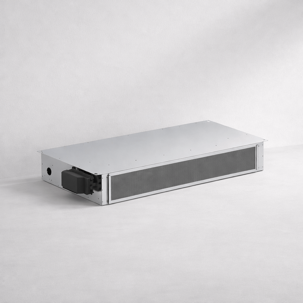 INNOVA DUCTO FNC THIN 400 — ультратонкий канальний фанкойл DC Inverter для прихованого монтажу в стелі або ніші. Висота корпусу лише 185 мм дозволяє інтегрувати обладнання в обмежений простір, а автоматична модуляція швидкості вентилятора допомагає підтримувати стабільний комфорт і низький рівень шуму. Модель підходить для систем опалення та охолодження з тепловими насосами, чиллерами або іншими водяними джерелами тепла/холоду.